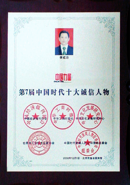 当问到如何看待当选为“中国力量·第七届中国时代十大诚信人物”这项荣誉时,李成功先生说,能获得所有企业家都希望获得的“中国力量·第七届中国时代十大诚信人物”称号,在高兴之余,更感到企业责任的厚重。作为当代企业家,仍然面临着各方面的严峻挑战,我们不能停止前进的脚步,将更加努力奋发、与时俱进。