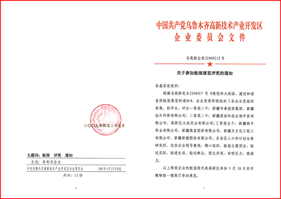 为迎接中华人民共和国诞生60周年和开展好第27个民族团结教育月宣传活动,高新区于4月25~26日举办了由辖区内各文明委成员单位和各企业积极参与的“感恩伟大祖国 建设和谐首府”板报展,华春投资集团以着重反映华春企业全貌和着重反映华春员工风采的2块宣传板报,以其板报编辑的思想性和构思设计的新颖性,得到了高新区评委会的首肯,在参展的众多板报中被评为第一名,将于5月中旬参加由乌鲁木齐市委宣传部组织的优秀板报展览。