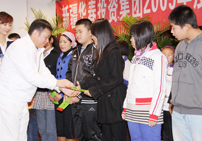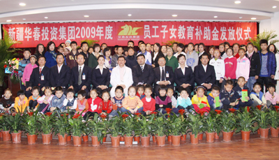 11月1日,华春投资集团员工的近百名子女欢天喜地的迎来了一个在首府乃至在全疆绝无仅有的特殊节日——华春投资集团举办2009年首批员工子女教育补助金的启动仪式,当天就有84个员工家庭的子女领到了近十万元教育补助金,其中有一个员工家庭的3个子女同时获得教育补助金,另一个员工家庭的两个子女获得了7000元。
