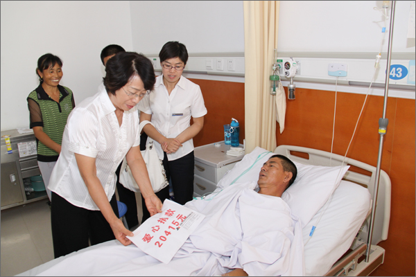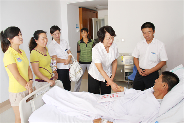 2012年7月27日下午,新疆华春投资集团工会主席高青与集团下属的新疆华景物业服务有限公司、集团人力资源部、行政办及编辑部等部门的管理人员一行6人,带着华春全员的真挚情意及慰问品,前往新疆医学院看望慰问华景物业公司员工张瑞患病住院的父亲。集团工会主席首先向张瑞的父亲转达了李成功总裁对他的关心和诚挚问候,送上了华春全员给他捐助的2万多元的爱心捐款。