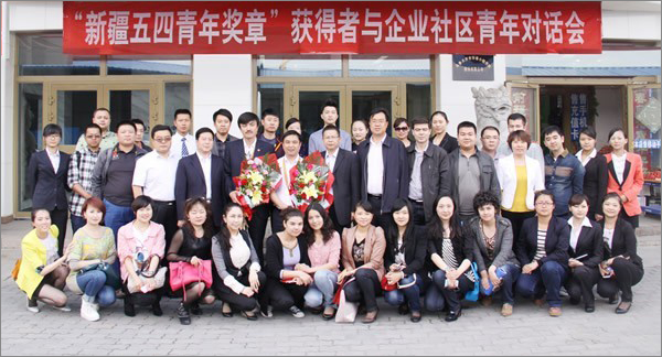 由自治区团委主办,乌鲁木齐市团委承办的新疆五四青年奖章获得者与企业社区青年对话活动,于5月6日下午在新疆华春投资集团举行。来自首府十余个企业70余名青年代表参加了对话会,共同分享新一届新疆五四青年奖章获得者杨述友和艾沙江•尼扎木丁他们的成长经历和奋斗故事。自治区团委副书记曾冠军、城市青年工作部部长、副部长出席了座谈会,会议由团市委副书记毛明•依明主持。