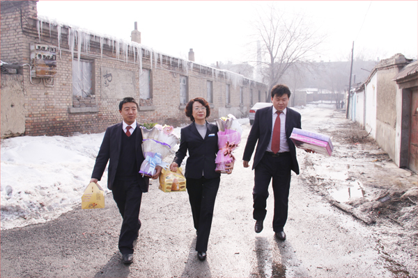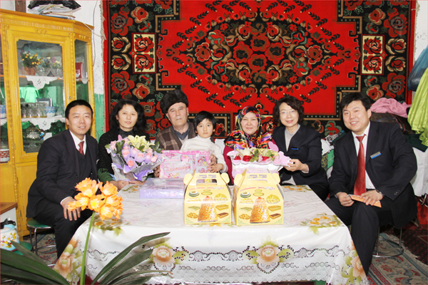 这是在2012年的“三八”国际劳动妇女节到来之际,华春投资集团工会主席高青、工会委员郑培君和已故员工阿里木•阿吾东生前所在企业即华春投资集团下属的新疆华景物业服务有限公司的管理人员一行,带着华春投资集团总裁李成功先生和华春全员的深情厚谊,特地前往已故员工阿里木•阿吾东的家,看望慰问了其父母与妻子、孩子,送上鲜花和慰问品,致以诚挚的关爱之情并送上节日的祝福,使已故员工的家属真切感受到了来自华春这个大家庭的关怀和温暖。