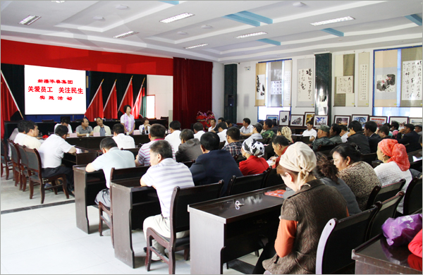 在北塔山牧场场部举办的座谈会上,华春工会主席向来自全牧场各牧业连队的基层负责人,全面概括的讲解了华春的主要产业、企业战略和优秀企业文化。为加快少数民族贫困地区的脱贫致富、安排更多的少数民族人员就业,华春集团注重大力发展毛纺产业。位于五家渠市的华春毛纺工业园作为传统产业,可直接安排近千人就业,并能带动上下游产业链的发展,尤其是基层农牧区的农牧民生产和就业。华春有决心做强做大新疆毛纺产业,振兴民族产业,为吸纳更多的少数民族富余劳动力就业,做出应有的贡献。