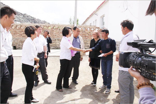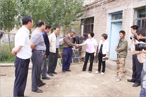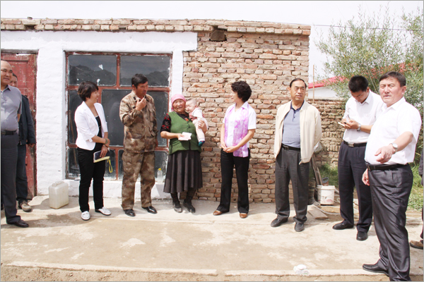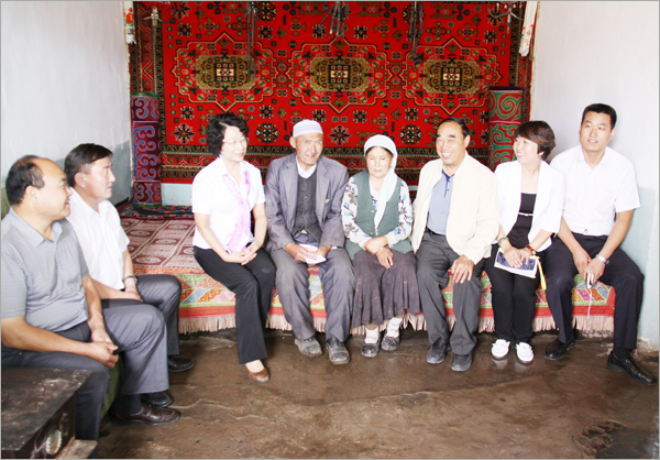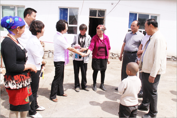 华春慰问组与五家渠师市有关领导在北塔山牧场负责人的陪同下,驱车先后来到下面的各牧业连队,慰问那里的困难牧民。那些受到华春资助的困难牧民家庭,当接过华春慰问组给他家送来的500元慰问金时,感动得一时不知说什么好。对于他们素不相识的华春,却特地在他们过节之前,来到他们都极少走出去的山沟,给予他们资金上的帮助。北塔山牧场畜牧二队的卡斯木别克•努热阿合麦提、牧场畜牧一队的兰黑恩•萨纳提等牧民,一定要华春慰问组人员留下喝茶,要把过节的羊宰了招待华春人。看到华春慰问组人员谢绝而要离开他们时,紧紧握着华春慰问组人员的手。