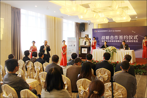 5月25日上午,新疆华春地产与海尔集团在新疆首府乌鲁木齐市的新闻发布会上举行了隆重的战略合作签约仪式。新疆华春投资集团执行总裁邓洁文女士与海尔智能家电科技公司市场总监肖金亭先生在合作协议书上签字,由此正式建立了战略合作伙伴关系。双方高管人员、地产行业专家以及来自重要媒体朋友们,共同参与了这一战略合作签约仪式。近20家主要媒体的记者参加了此次新闻发布会。