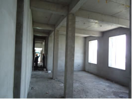 土建工程继续施工,现室内外墙面抹灰已完成90%,室内地坪清理完成90%、基础回填完成90%,配电箱正在安装,室内开关插座已基本安装完成,正在调整位置,给排水及通风、电梯等设备的预埋工作也在进行中。