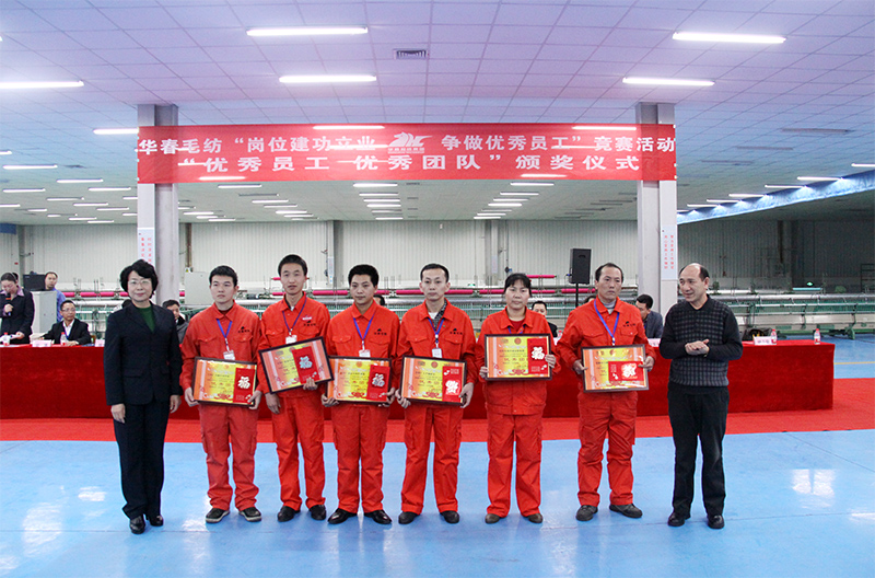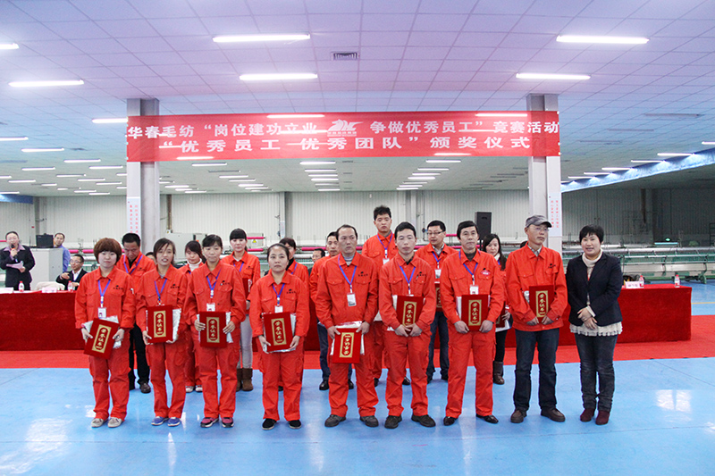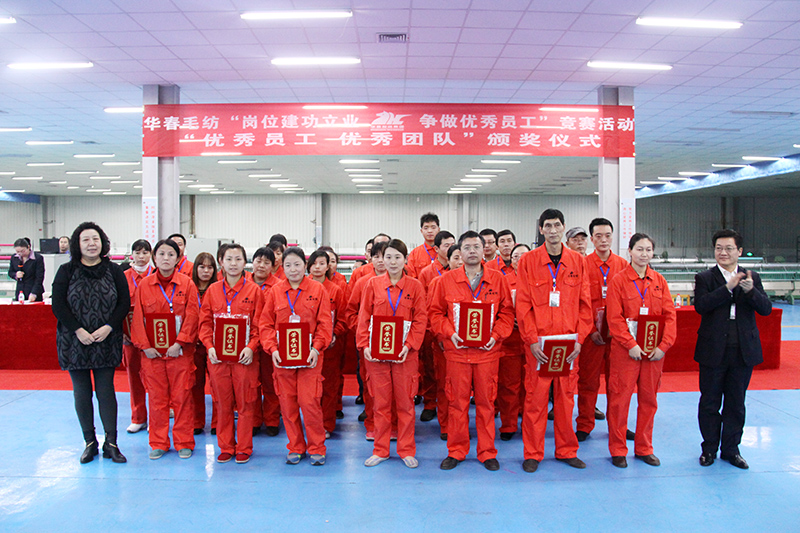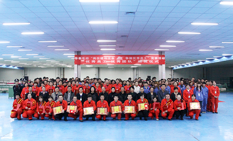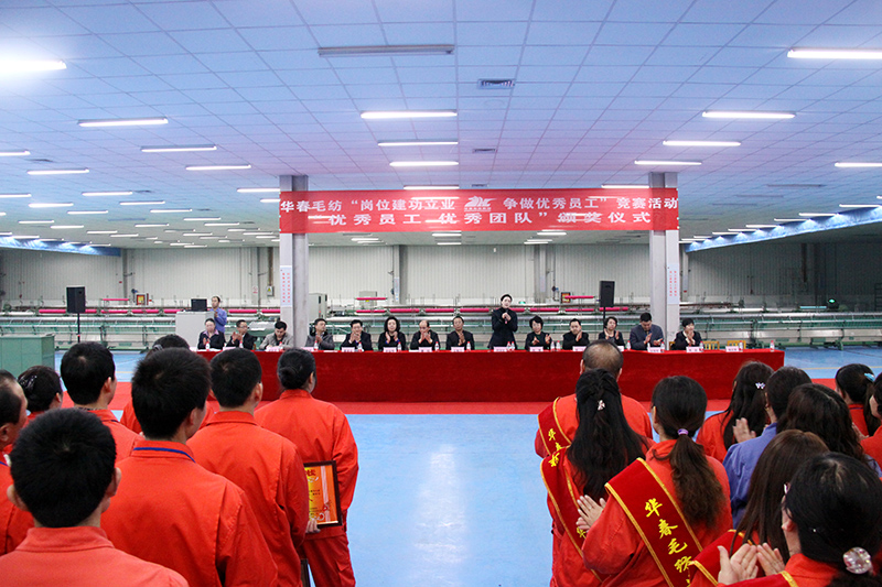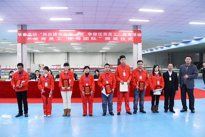 在去年的下半年,为了进一步激发华春毛纺广大员工的创造活力和劳动热情,全面推进华春毛纺的生产经营发展,华春集团工会和华春毛纺党委、工会,于2013年7月在华春毛纺开展了为期半年的、以“岗位建功立业、争做优秀员工”为主题的竞赛活动。旨在以提升劳动者素质为重点,增强员工的主人公意识、提升爱岗敬业精神,把智慧和力量凝聚到目标任务的完成上,为生产经营献计献策,推动企业降低成本、创新技术、提高效益。