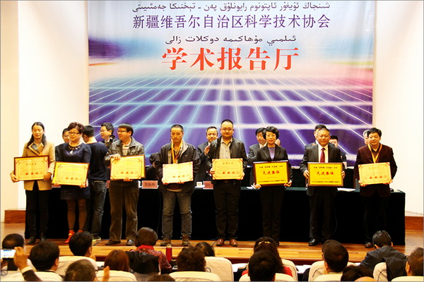 3月24日,在自治区科协全委会议隆重的颁奖仪式上,颁发了由中国科协、中华全国总工会、国务院国资委、发改委、科技部联合表彰的2013-2014年度全国“讲理想、比贡献” 活动先进集体和个人的奖牌和荣誉证书,新疆华春投资集团和李成功总裁分别被授予全国“讲理想、比贡献”活动先进集体和优秀组织者荣誉称号。