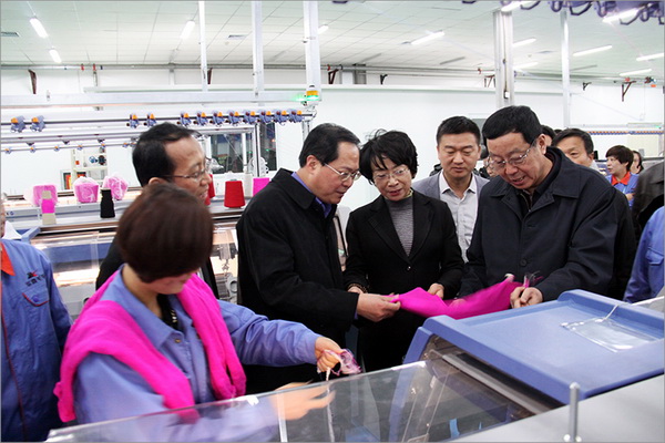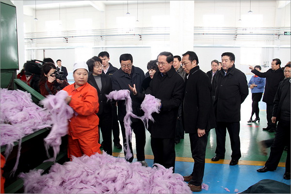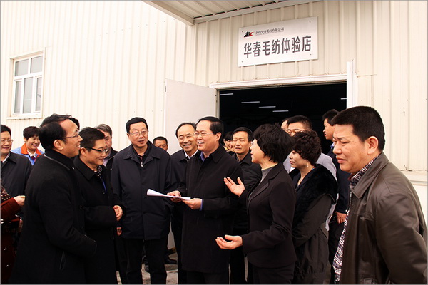 车俊对华春毛纺羊绒产品的出口量在整个国际经济形势处于下滑的状态下而却逐年上升,给予了高度赞赏。当得知华春集团和总裁李成功荣膺全国“讲理想、比贡献”先进集体和个人时,他说,这个企业的发展一定是有着文化背景的。他关心的询问当前企业在生产运营中还有什么困难,华春集团与华春毛纺管理人员给车俊汇报了当前企业发展急需解决的两个问题:一是要在每年的第一季度购进全年的羊绒原料,由于被称为软黄金的羊绒原料费用高,造成将大量资金压在原料上,存在着融资难的问题;二是对新疆纺织服装业的扶持政策,希望能够尽快落地,以支持纺织服装业的发展。