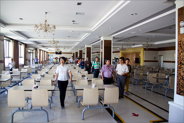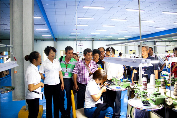 座谈会结束后,与会者参观了华春毛纺针织厂、成品展示店和员工餐厅。台湾劳动人权协会罗美文会长一行和自治区领导对华春的和谐劳动关系与以人为本的优秀企业文化,给予了高度肯定和赞扬。