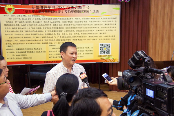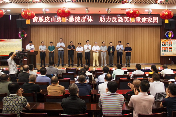 8月11日上午,自治区见义勇为基金会“情系皮山勇斗暴徒群体 助力反恐英模重建家园”献爱心动员会在自治区人民检察院隆重举行。自治区党委政法委副书记、见义勇为基金会常务副理事长刘克勤与自治区纪检监察厅、司法厅、审计厅、公安厅等党政领导以及新闻媒体参会。
