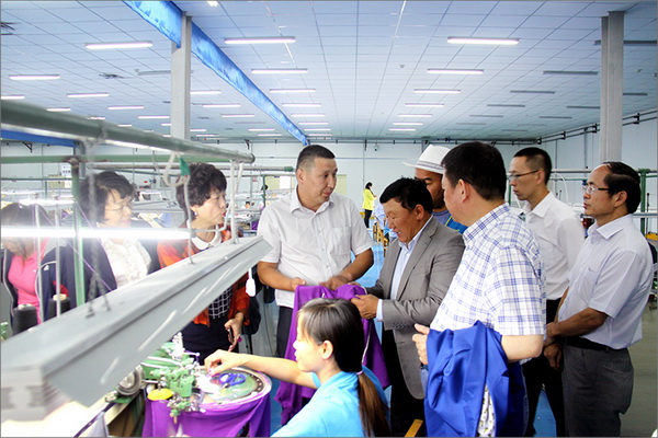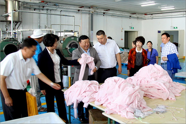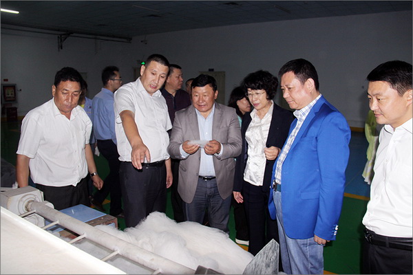 策文绕登省长一行对华春集团下属的子公司华春毛纺工业园进行了考察,在参观了以现代化设备加工生产高档羊绒制品的全过程后,与华春集团就羊绒原料的战略采购合作进行了详细全面的洽谈。李成功总裁向策文绕登省长一行介绍了华春毛纺产业今后发展的总体战略规划、华春毛纺工业园一期每年的生产原料所需量和产品出口及品牌建设目标等情况,希望在中国建设丝绸之路经济带的重大历史机遇下,共享新丝绸之路经济带构想带来的互惠互利。策文绕登省长介绍了蒙古国科布多省畜牧业羊绒生产的基本状况。他表示,希望与华春集团建立长期的羊绒供货合作关系,以带动蒙古国科布多省畜牧业的发展。