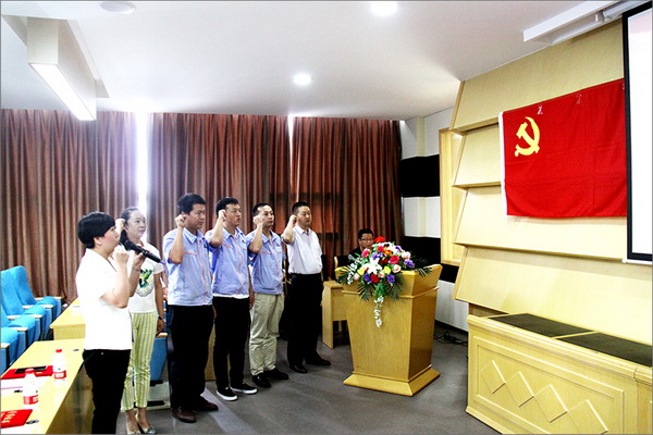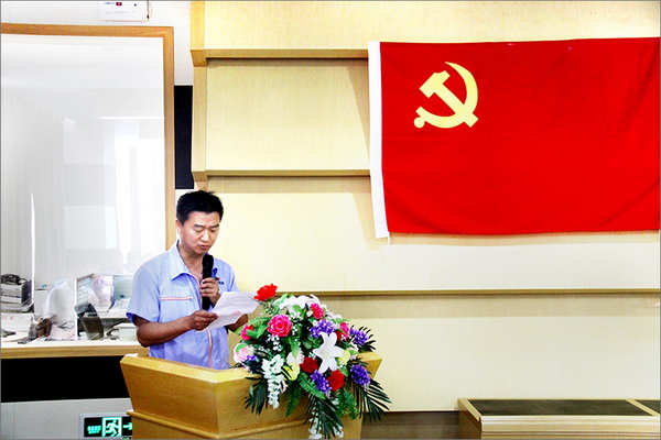 党委委员王新平同志宣读了《关于对优秀共产党员、优秀党务工作者的表彰决定》,11位优秀共产党员和优秀党务工作者受到表彰;集团党委副书记陈遵义同志宣读了《关于对预备党员的审批决定》,由党委委员胡梅同志领誓,6名新党员庄严宣誓,张文辉代表新党员发表了感言。