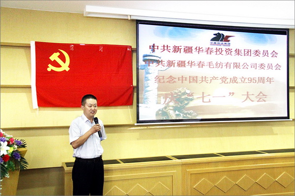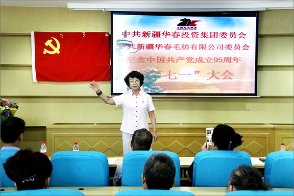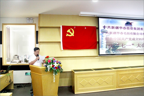 为庆祝中国共产党建党95周年,迎接“七一”党的生日,6月28日,集团党委与华春毛纺党委庆“七一”党员大会在华春毛纺AAA级旅游工业园举行,60多名来自华春各条战线的共产党员和入党积极分子的代表参会。