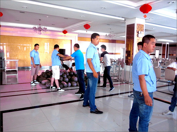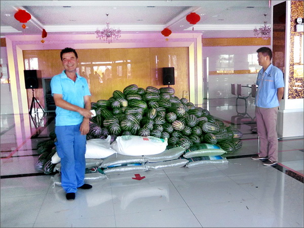 在炎炎暑夏的7月底,五家渠师市工会主席董亮全一行5人,前往行业龙头企业新疆华春毛纺工业园,为奋战在大生产一线的各族员工送上关爱的“清凉大包”——满满一车的5000公斤西瓜、400公斤绿豆、100公斤白砂糖等防暑降温品。