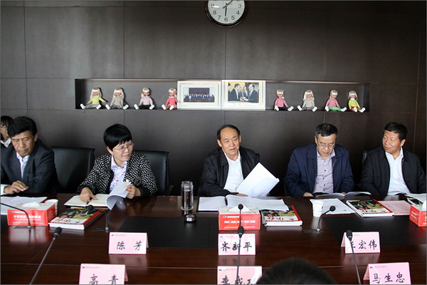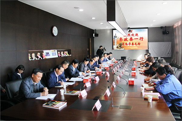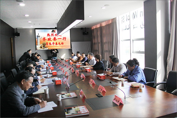 在国庆节即将到来的前夕,兵团第六师五家渠市党委书记、政委齐新平带领师市相关部门领导一行十多人,到华春毛纺调研,与华春投资集团部分高管和华春毛纺管理人员进行了座谈。华春集团李成功总裁就华春毛纺生产经营、产品销售、员工情况以及遇到的问题等,向齐新平政委一行做了汇报。