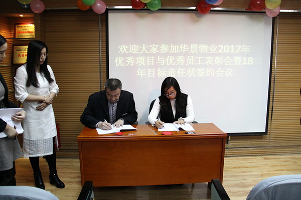 凝聚力量超越期待华景物业举办2017年优秀表彰暨2018年目标责任状签约会