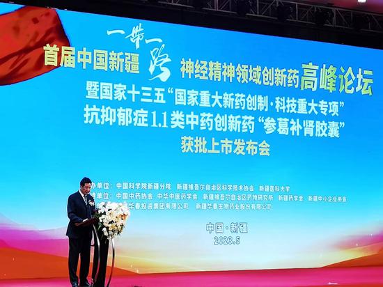 中新网新疆新闻5月26日电 (记者 闫文陆)由中国科学院新疆分院、新疆科学技术协会和新疆医科大学联合主办的首届中国新疆“一带一路”神经精神领域创新药高峰论坛暨国家十三五“国家重大新药创制•科技重大专项”抗抑郁症1.1类中药创新药“参葛补肾胶囊”获批上市发布会,26日于乌鲁木齐举办。