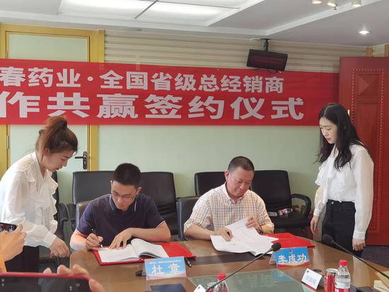 新疆华春投资集团董事局主席兼总裁、华春药业董事长李成功 ,分别与河南亿诺医疗服务有限公司总经理刘磊(河南省代)、西藏林芝百盛药业有限公司总经理王彦喆(辽宁省代)、湖南药众联信息技术有限公司销售总监钟庆成(湖南省代)、山西仁达药业有限公司董事长徐金木(山西省代)签订了《“参葛补肾胶囊”推广服务协议暨省级总经销协议》。华春药业此次与全国4家省级总经销商签署合作协议,标志着华春药业抗抑郁症1.1类中药创新药“参葛补肾胶囊”在全国的营销布局进入实质性阶段。