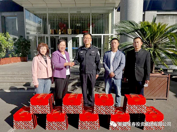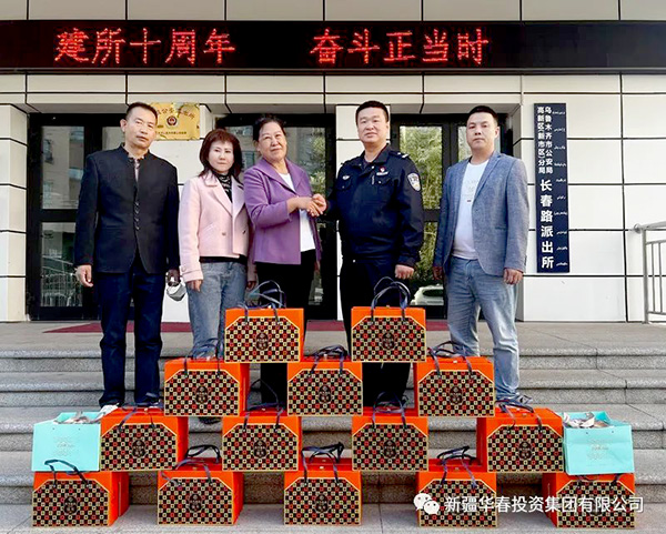 在中秋、国庆双节即将来临之际的9月28日,新疆华春投资集团董事局主席兼总裁李成功先生特地委派总裁助理尚淑梅一行前往乌鲁木齐市长春路派出所、钻石城派出所和锦城社区、昆明路社区,为长期奋战在基层一线的民警和社区工作人员送去了节日慰问品和祝福,对基层一线民警和社区工作人员为辖区营造良好营商环境保驾护航做出的贡献,表示衷心的感谢和崇高敬意。