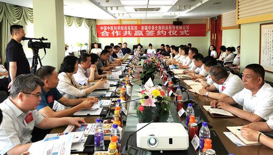 中新网新疆新闻6月29日电 (记者 闫文陆)29日,中国中医科学院西苑医院与新疆华春生物药业股份有限公司签订合作协议。双方将以此次合作为契机,携手充分发挥合作优势,共同致力于中医药事业的发展。