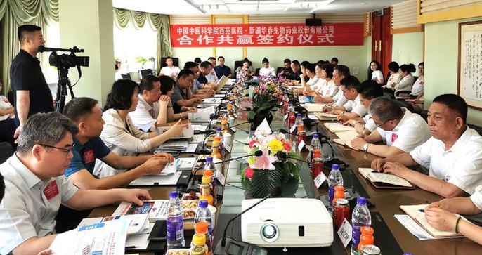 新疆维吾尔自治区科协党组书记王光强介绍,广袤富饶的新疆大地上,孕育着丰富的道地药材资源,是中医药事业发展的沃土。中国中医科学院西苑医院联合新疆华春药业,共同推动科技成果转化和产学研合作发展,将有力推动新疆中医药产业的创新发展和现代化产业进程。