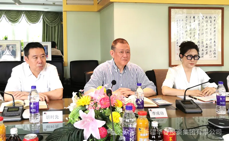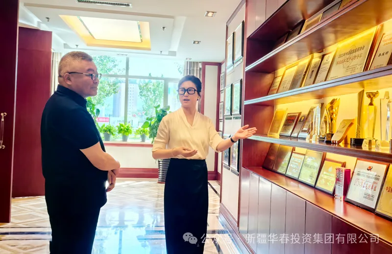 2024年8月8日,新疆维吾尔自治区卫生健康委党组成员、自治区中医药管理局党组书记、局长曾斌芳,新疆维吾尔自治区中医药管理局规划与产业发展处处长曾兴水和规划与产业发展处副处长庞市宾一行三人,莅临新疆华春投资集团有限公司(简称:华春集团)进行调研指导。此次调研旨在深入了解华春集团在中医药产业方面的发展情况,就中医药产业发展现状、推动新疆中医药产业高质量发展、未来规划及合作方向进行了座谈交流。座谈会由华春集团董事局主席兼总裁李成功先生主持,华春集团部分高中管人员参加。