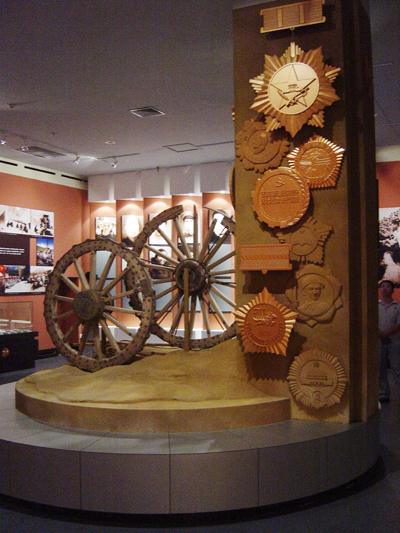 最令人感动的是在大型穹幕展厅,逼真的展示着军垦战士在那西北边陲天苍苍、野茫茫的亘古荒原,以其革命的乐观主义精神战天斗地的垦荒史,在他们手中奇迹般的将戈壁荒滩变成一个现代化的园林城市。军垦精神,彪炳史册!