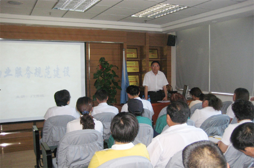 2010年6月28日下午,华景物业公司特邀物业专家门芳琪先生,对物业公司各级管理人员进行了物业服务规范建设和物业小区案例分析的培训。目的是为了规范物业服务与管理,学习优秀小区的方法与经验,建立严、细、精物业服务工作标准。通过小区案例分析的培训,明晰小区切实存在问题的责权划分以及法律法规的内容。