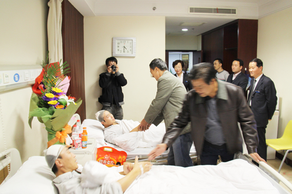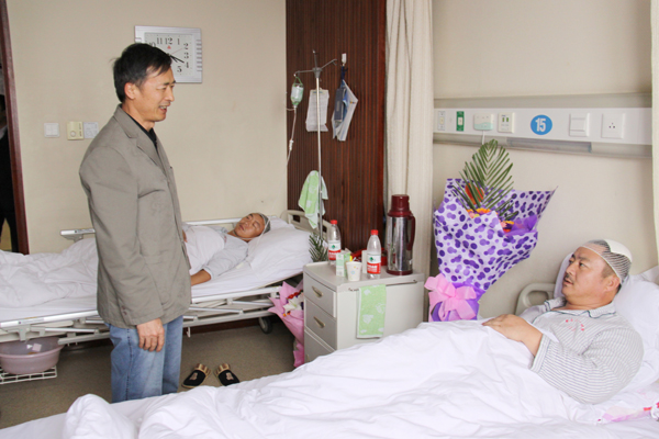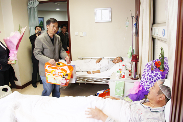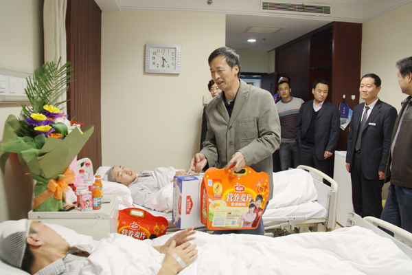 11月16日,乌鲁木齐高新区工会主席韩建新一行6人,前往医学院住院部看望慰问了为保护公司财产,而被昌吉州多斯巴亿农业开发有限责任公司打伤的乌鲁木齐市华春商贸有限公司7名员工。