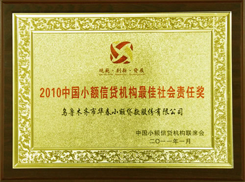 获得“2010中国小额信贷机构尚佳社会责任奖”的小贷机构,均要求对中国小额信贷行业有突出贡献,具备良好发展潜力、贷款额达到相当规模、利润保持持续较高增长,在推动小额信贷行业规范、持续发展上成绩显著,在小贷领域有广泛的知名度。华春小贷作为新疆小贷领域的杰出代表,一举获得2项殊荣。