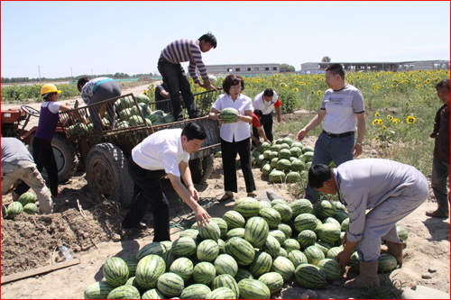 七月流火、骄阳肆意,华春集团心系一线职工。7月9日,华春党委、工会及行政管理人员一行5人,代表董事局主席兼总裁李成功先生和华春全体员工,前去五家渠华春毛纺工业园施工现场,慰问顶着酷暑奋战在一线的职工及施工、监理等现场技术管理人员,送去了3.6吨西瓜、300件矿泉水等慰问品,为他们送上华春全员的一片关怀之情。