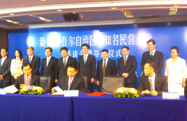 新疆维吾尔自治区与苏宁环球集团、东方希望、万达集团、四川宏达、泛海集团、金花集团等国内知名民营企业,进行了总投资额达1200多亿元的7个重点投资项目的签约。
