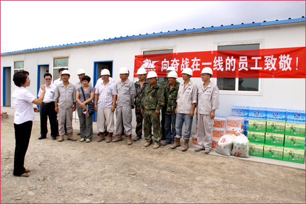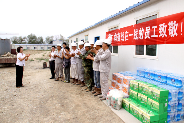 6月30日,新疆华春投资集团工会主席高青和行政办副主任郑培君、华春集团子公司新疆恒润实业有限公司办公室主任及集团编辑部全员一行,将一箱箱的统一绿茶和茉莉蜜茶、一件件的纯净水及绿豆、冰糖、白糖等降温防暑饮料与物品,送给奋战在五家渠华春毛纺工业园项目建设工地的一线员工,同时也送去了李成功总裁和华春全员的关爱之心。一线员工们接到公司送来的慰问品,深深感受到公司的关怀,“感谢李总裁对我们的关心!谢谢公司对我们的慰问看望!”