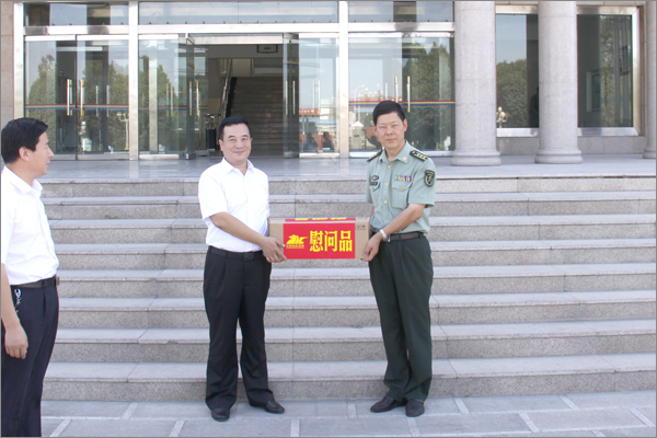 为密切军民关系,营造浓厚的爱国主义拥军氛围,在“八一”建军节来临之际,7月31日,由新疆华春投资集团副总裁常青、党委书记严天利、工会主席高青、总裁助理李荣桂、统战部长秦维华、团委书记胡梅及行政办副主任、编辑部副部长邵栋一行8人组成的慰问团,专程到驻地部队预备役通信团进行慰问,送上华春集团全员的深情厚谊和李成功总裁特地为驻地部队官兵购买的10台三星平板电脑,向钢铁长城部队官兵致以诚挚的问候和崇高的敬意!