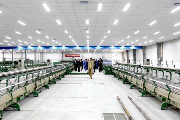 李总裁带领管理人员参观梳纺车间