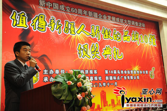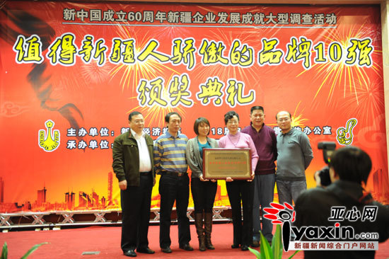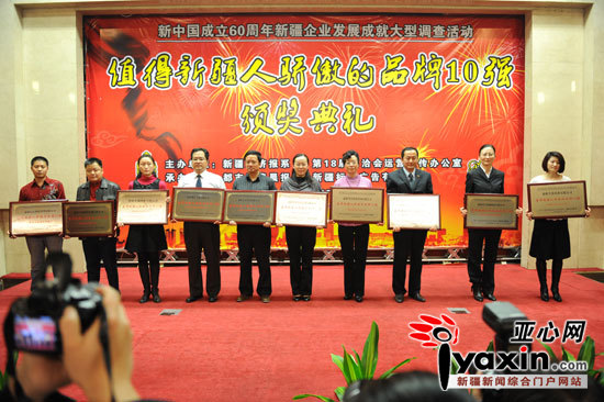 《亚心网》2009.11.09报道:“值得新疆人骄傲的品牌10强”评选活动颁奖