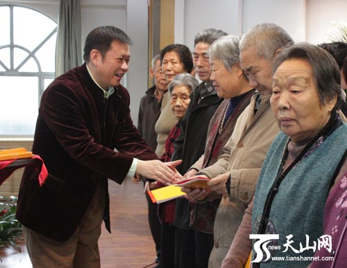 天山网讯(记者王树勤摄影报道)11月25日上午,新疆华春投资集团2009年度员工父母长寿敬老基金发放仪式正式启动,近百位员工的父母一个个手捧着装有敬老基金的红包,脸上洋溢着幸福和喜悦。自治区工商联副主席艾尔肯·木沙长等领导出席了发放仪式。