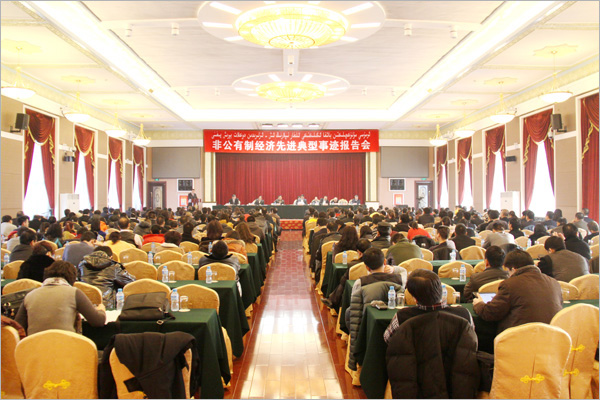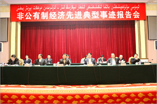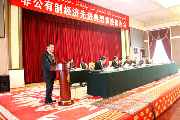 新疆隆重召开非公有制经济先进典型事迹报告会--新疆华春集团有限公司李成功总裁在会上报告先进典型事迹