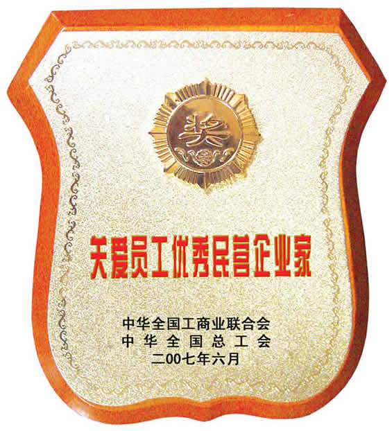 “关爱员工优秀民营企业家”荣誉证书