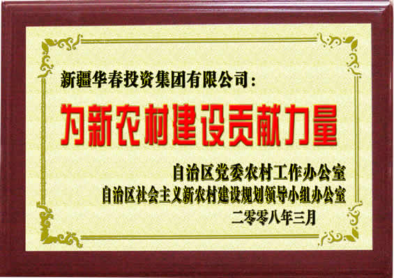 “为新农村建设贡献力量”荣誉证书