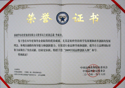 “2009中国品牌创新人物”称号